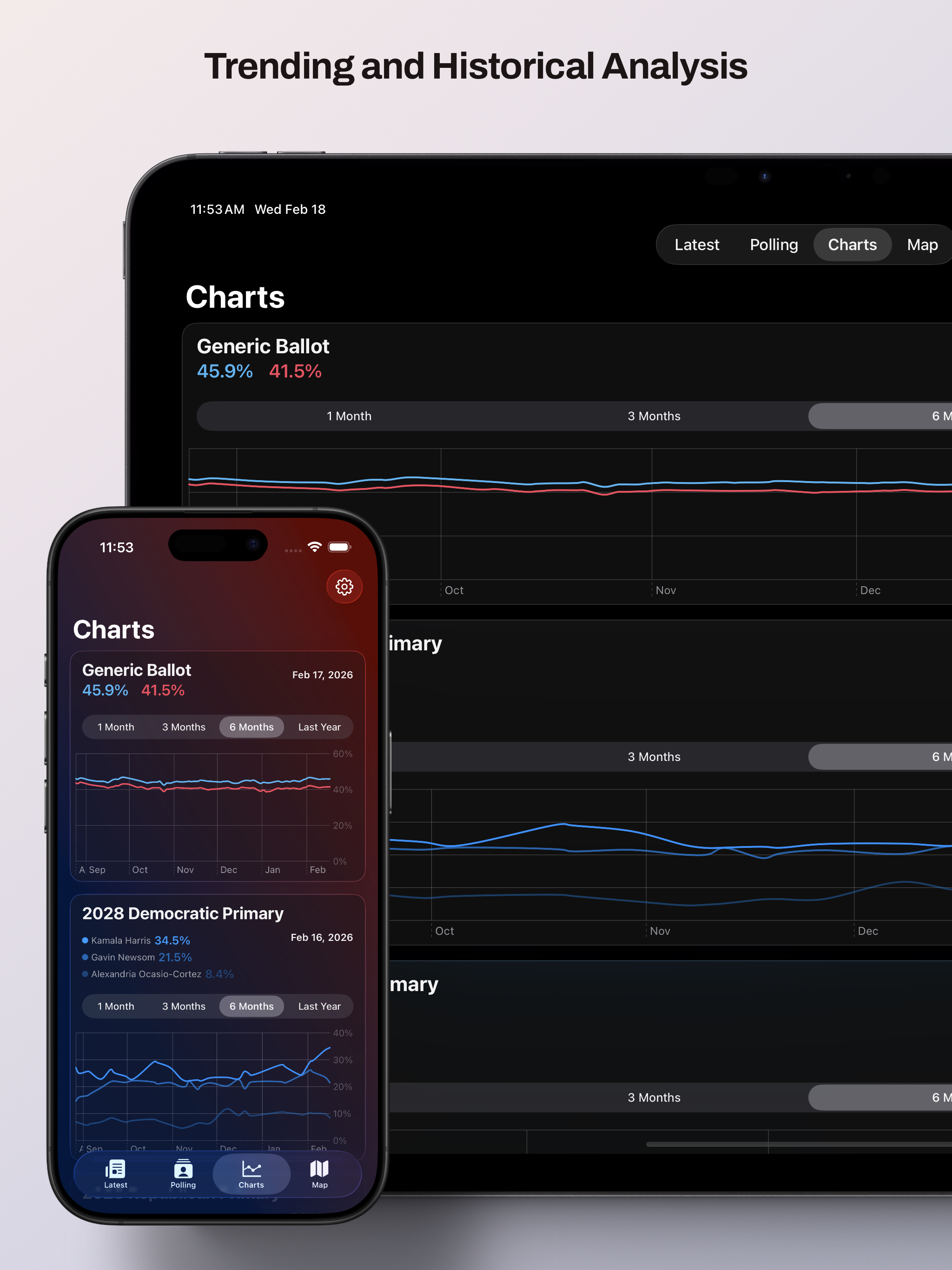 There are native iOS widgets as well, so the data comes to your Home Screen without even having to check the app. The latest Trends and polling numbers.